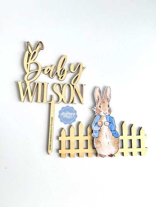 Baby Shower Plywood Cake Topper | Peter Rabbit Theme Cake Topper | Bunny Cake Topper