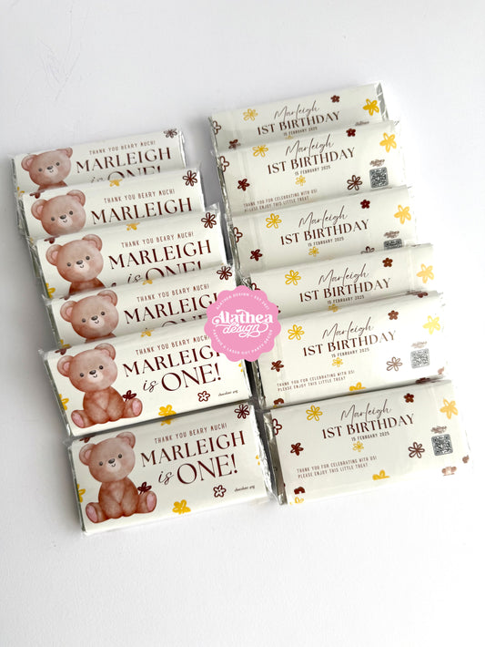 Bear Theme Personalised Chocolate Bar - 40g | Custom Party Favour