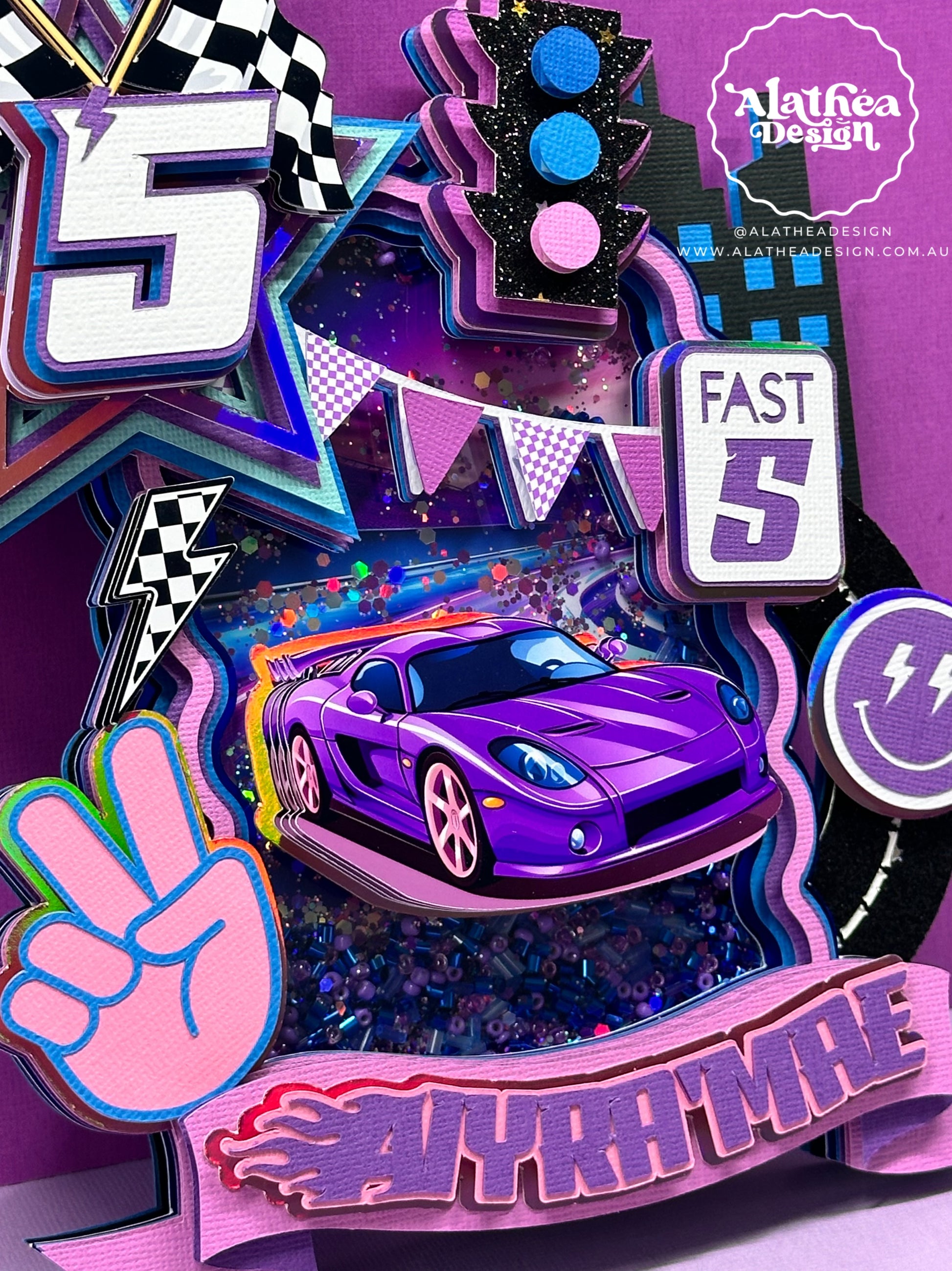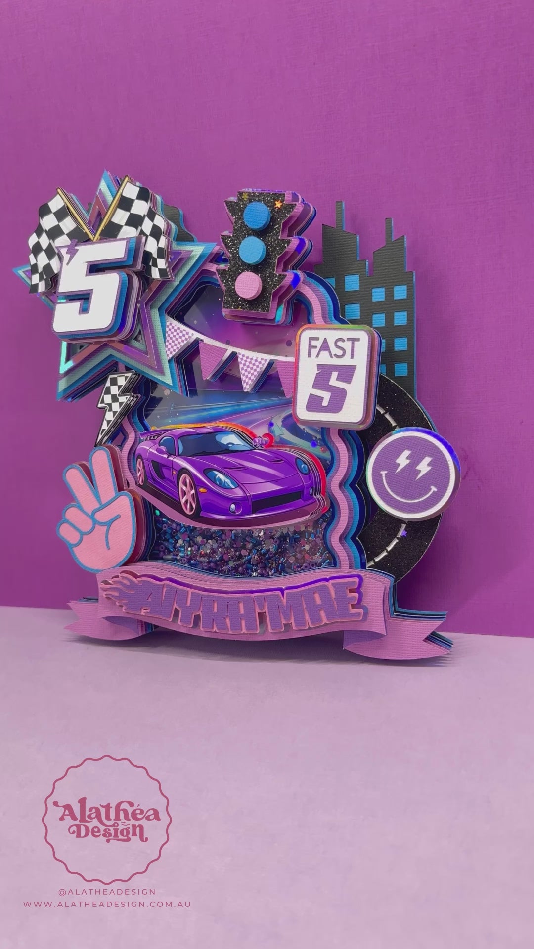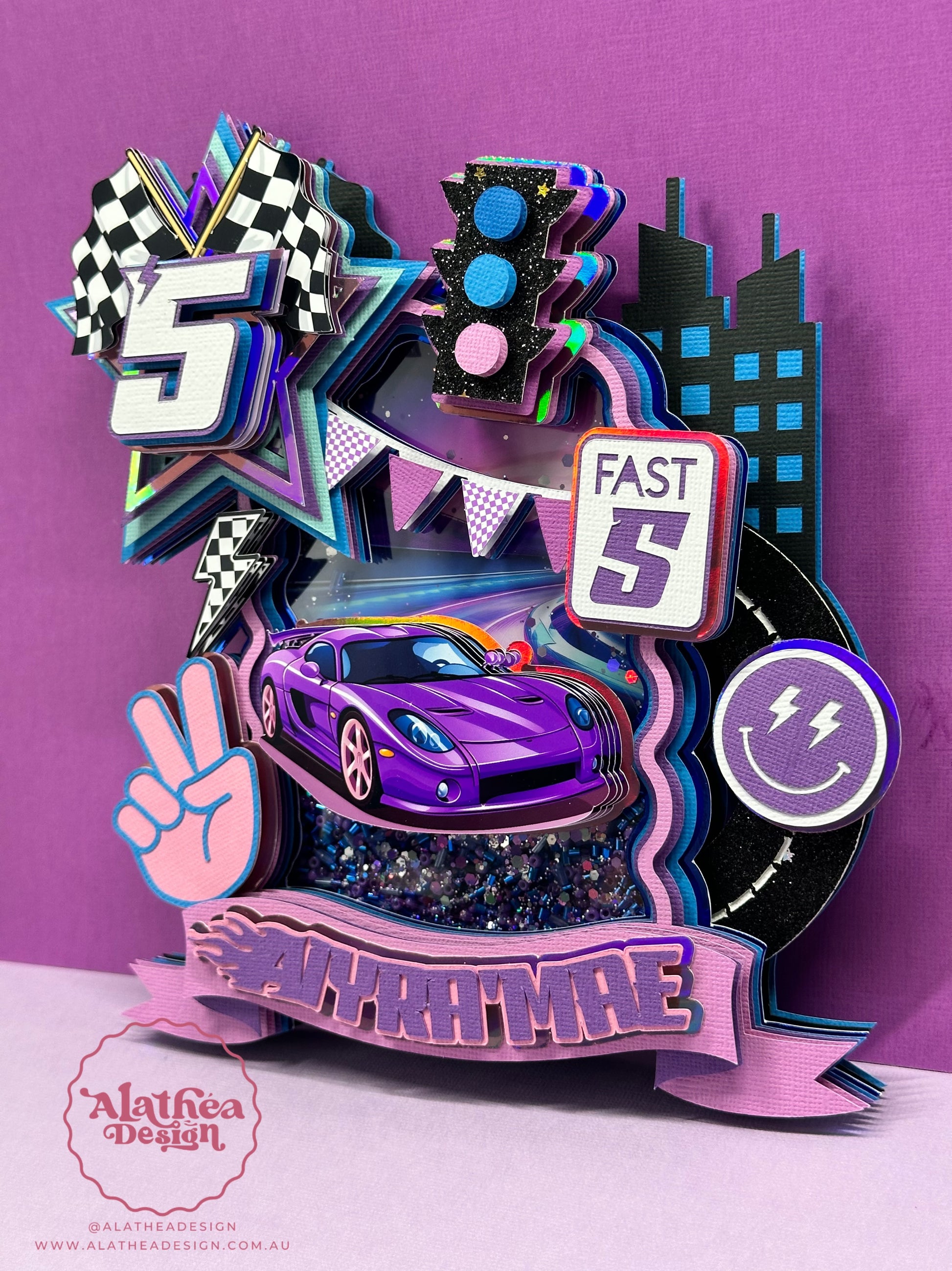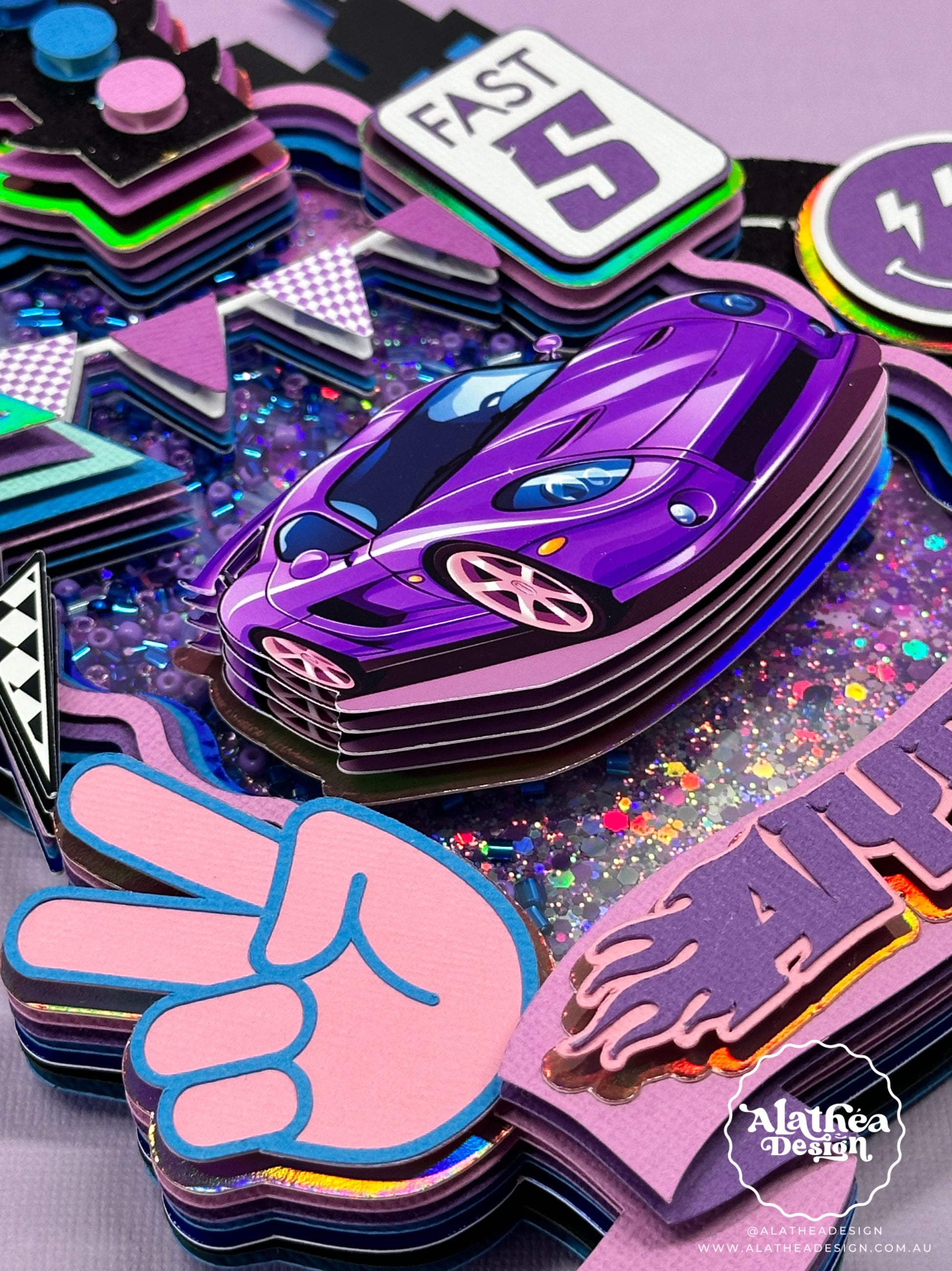 Rev up the excitement with our 3D Fast Five Cake Topper! Inspired by one of the iconic Tokyo Drift scenes, this cake topper captures the thrill and vibrancy of neon and retro elements. Featuring a dynamic purple and blue colour palette, this topper is designed to make your cake the centrepiece of any celebration