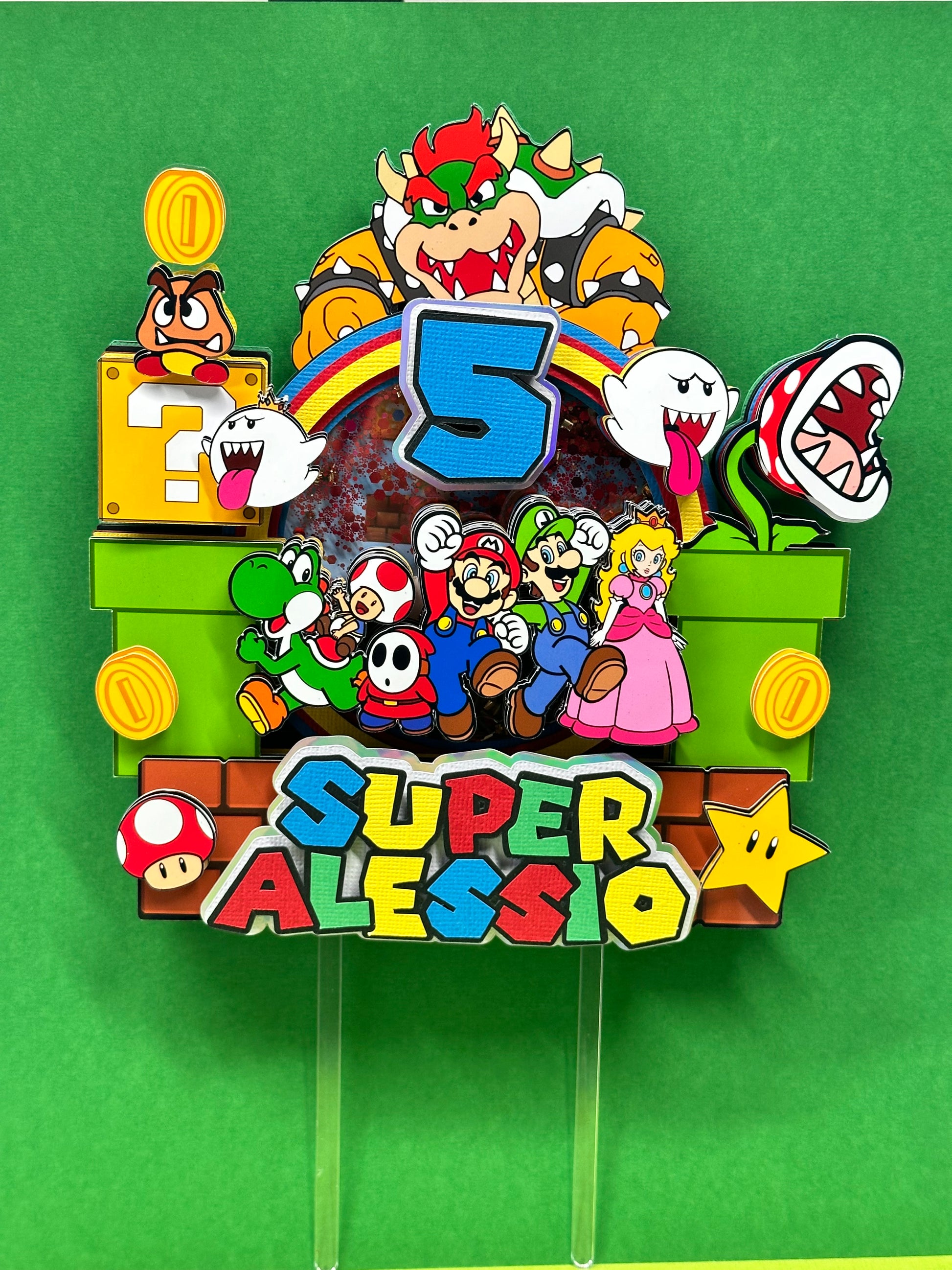 Whether you're hosting a birthday party, a gaming-themed event, or a Super Mario fan gathering, this cake topper is the perfect centerpiece for your dessert table. Add a dash of adventure and nostalgia to your celebration with our Super Mario Themed 3D Cake Topper!