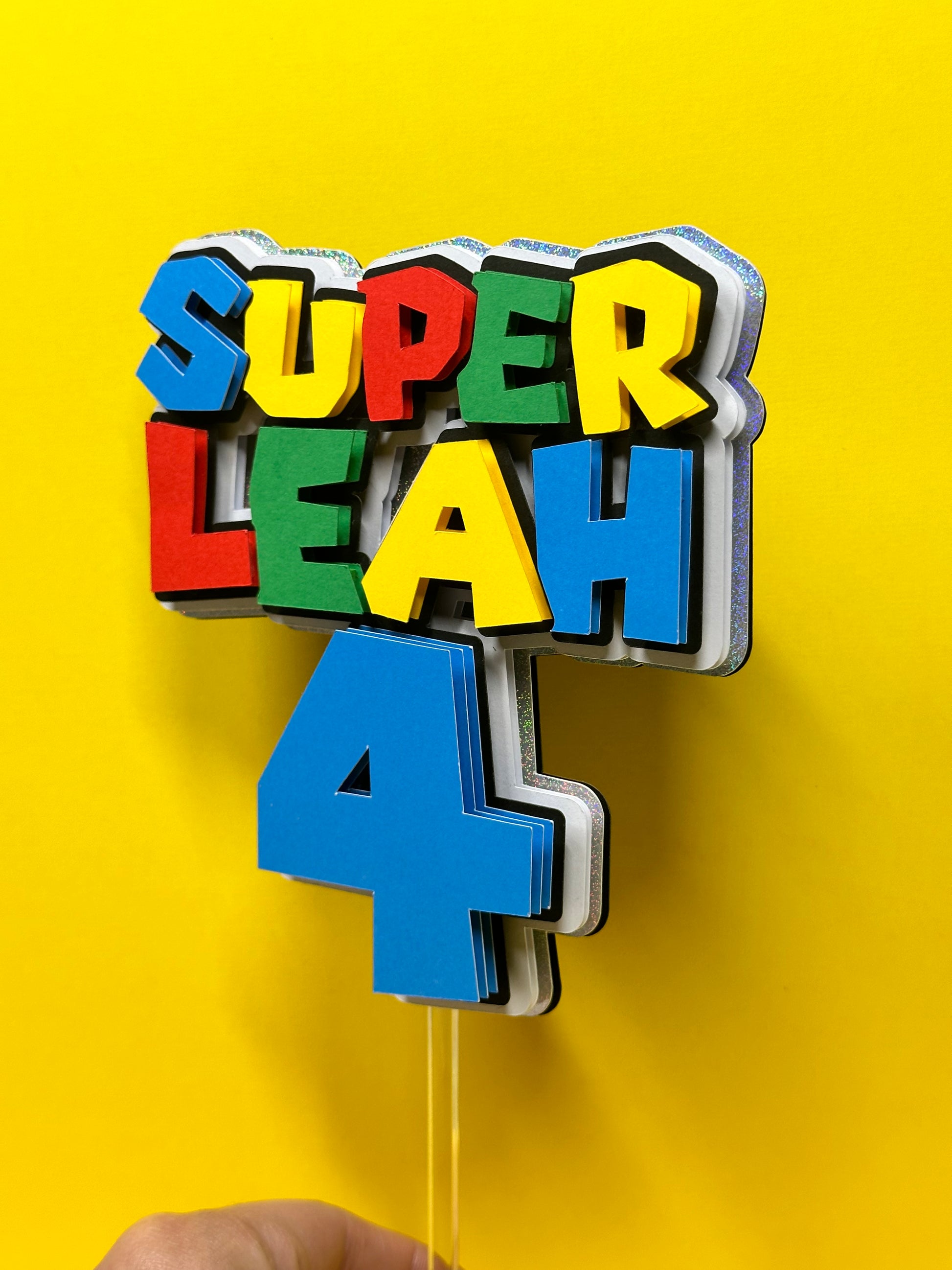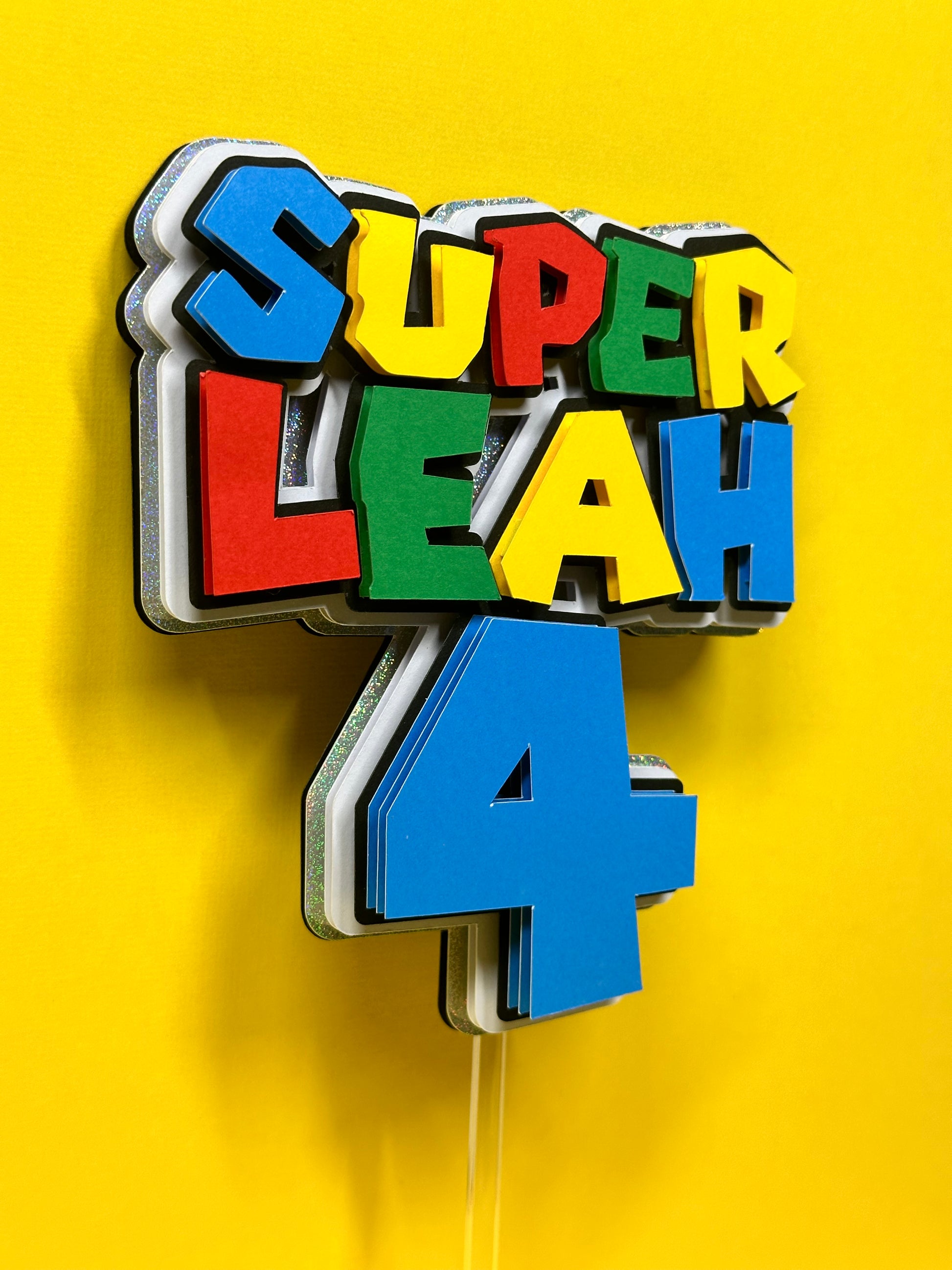 Level up your party with our Personalised Super Mario Bros-Inspired Logo Cake Topper!